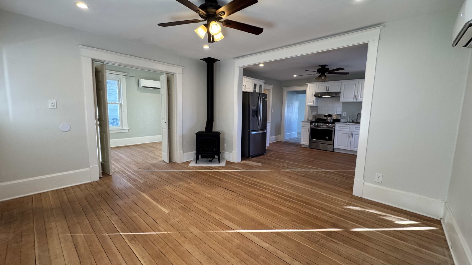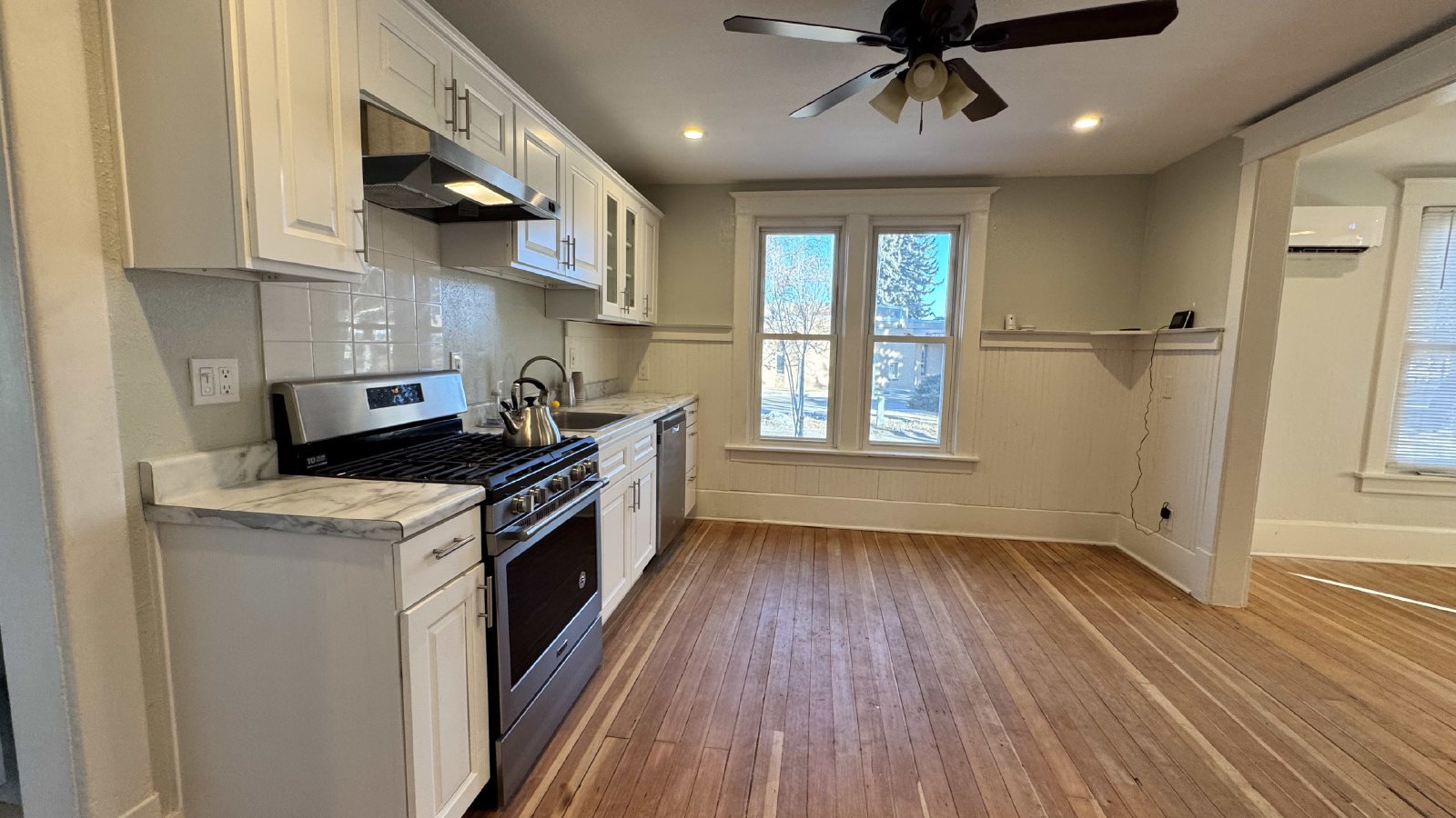 This charming two-bedroom, one-bath historic home is located just one block south of downtown Cody, offering easy access to boutique shopping, restaurants, and parks. The remodeled interior highlights original fir floors, newer windows, and a cozy living space with a new gas fireplace. Enjoy hardwood and tile floors throughout, a bright updated kitchen with a newer fridge, stove, and dishwasher, and an enclosed back porch for added space. Three mini-splits provide efficient air conditioning, while the large front porch offers a welcoming outdoor retreat. Additional conveniences include off-street parking. No pets. No smoking. Tenant responsible for establishing and maintaining utilities with City of Cody and Black Hills Energy. 6-month lease Only!